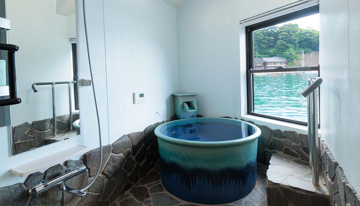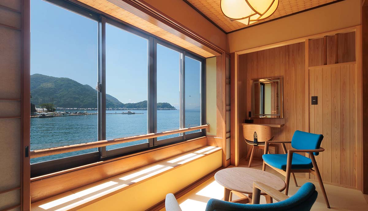 大人のための隠れ家として、風情ある町並みと海の景色が広がるこの宿で、