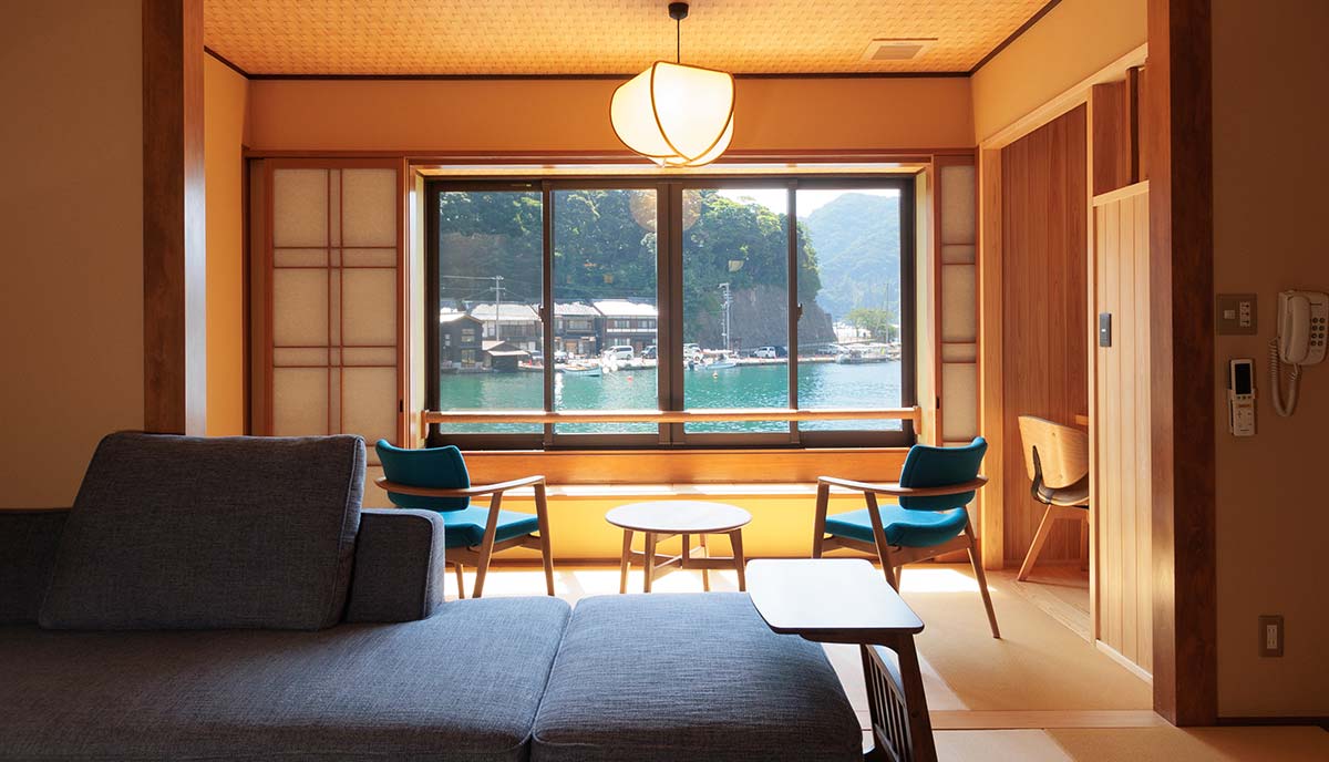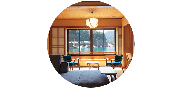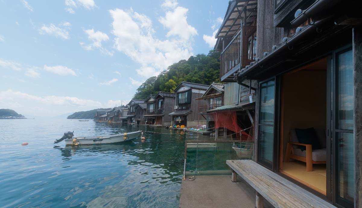 穏やかな伊根湾に面した舟屋は、日常の喧騒から離れ、心と体をゆったりと癒す場所。